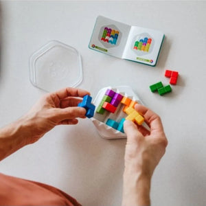 The durable transparent lid keeps all the pieces neatly in place, making it perfect for travel, study breaks, desk play, or quiet downtime. With nine colourful puzzle pieces and two challenge booklets, players must use logic, spatial insight and strategic thinking to complete increasingly complex builds.