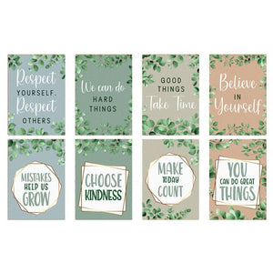 Create a calm, uplifting classroom environment with the Eucalyptus Essentials Motivational Poster Set. Designed in soft neutral tones with soothing eucalyptus leaf artwork, this set helps foster positivity, kindness and self-belief in students of all ages.